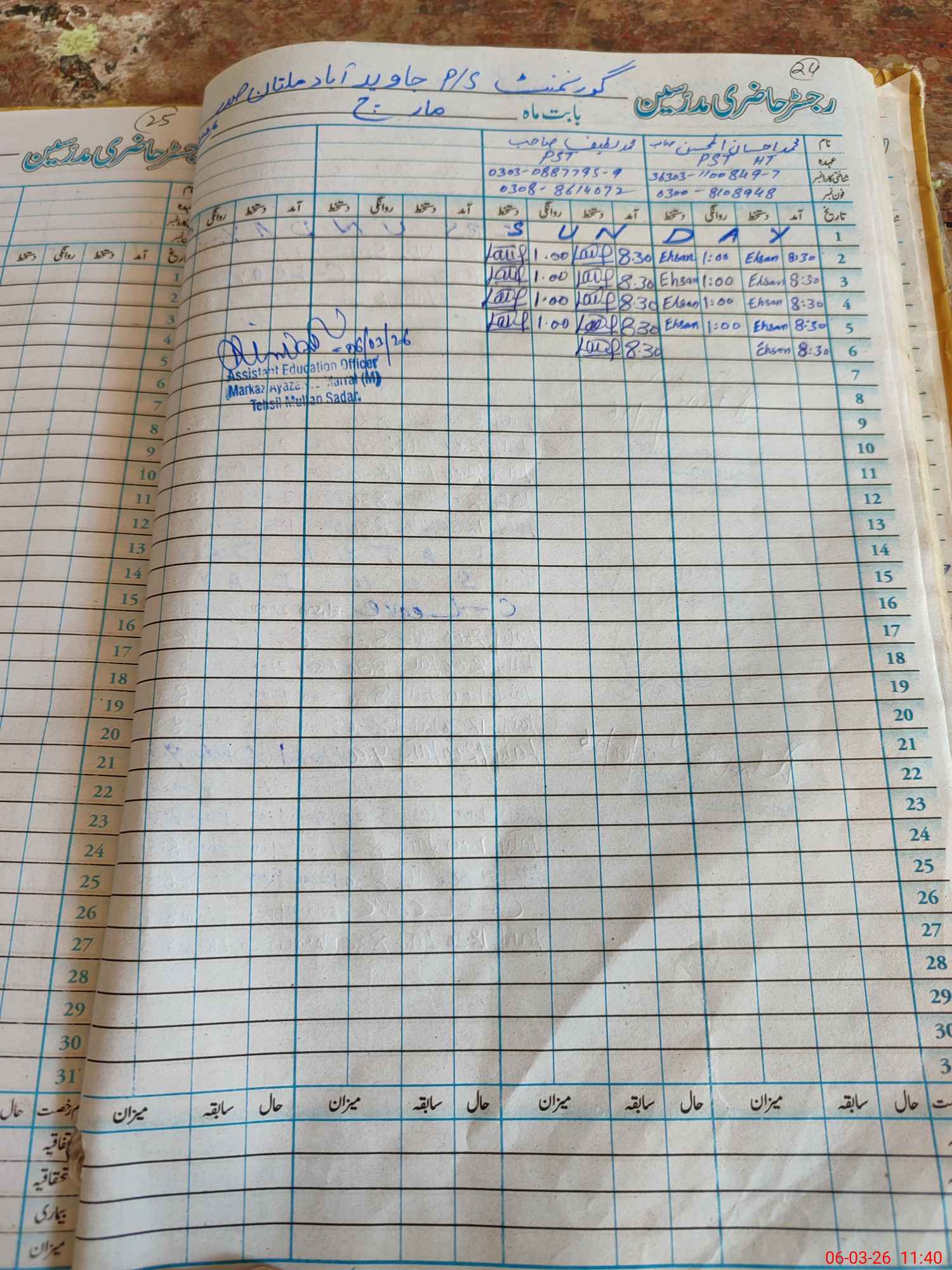 | Name: MIh**** UlMo**** Designation: (School Headmaster's/Headmistress's) PST HEAD. TEACHER Phone/Cell Number: 03**** |