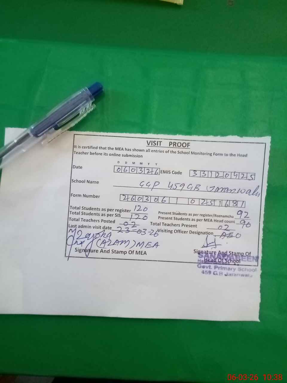| EMIS Code: 33120425 | Name of School: GGPS CHAK 459 GB LUNDIANWALA | |||
