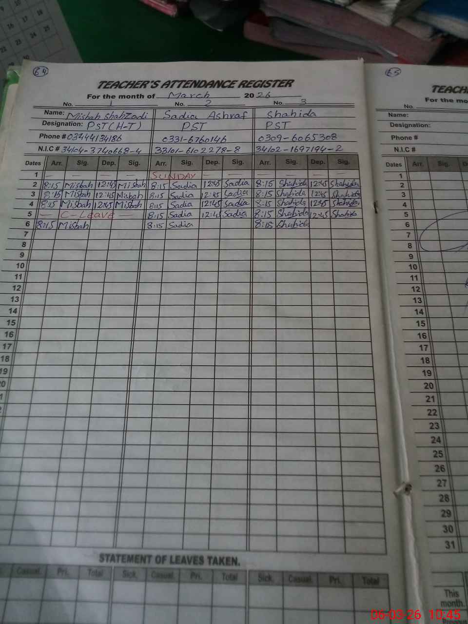 | Name: MI**** SH**** Designation: (School Headmaster's/Headmistress's) PST/PTC/JV Phone/Cell Number: 03**** |