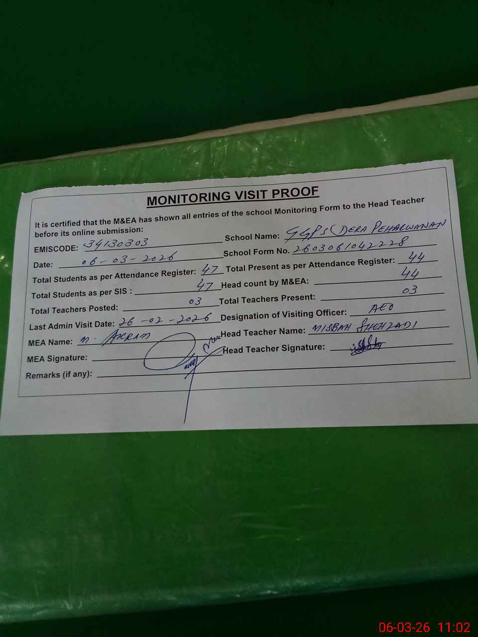 | EMIS Code: 34130303 | Name of School: GGPS DERA PEHLWANAN | |||