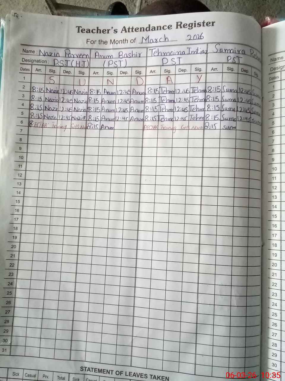 | 37**** | Te**** Im**** | PST Arts | Regular | 0 | 0 | 0 | 0 | 0 | 0 | 0 | 0 | 0 | On Training |