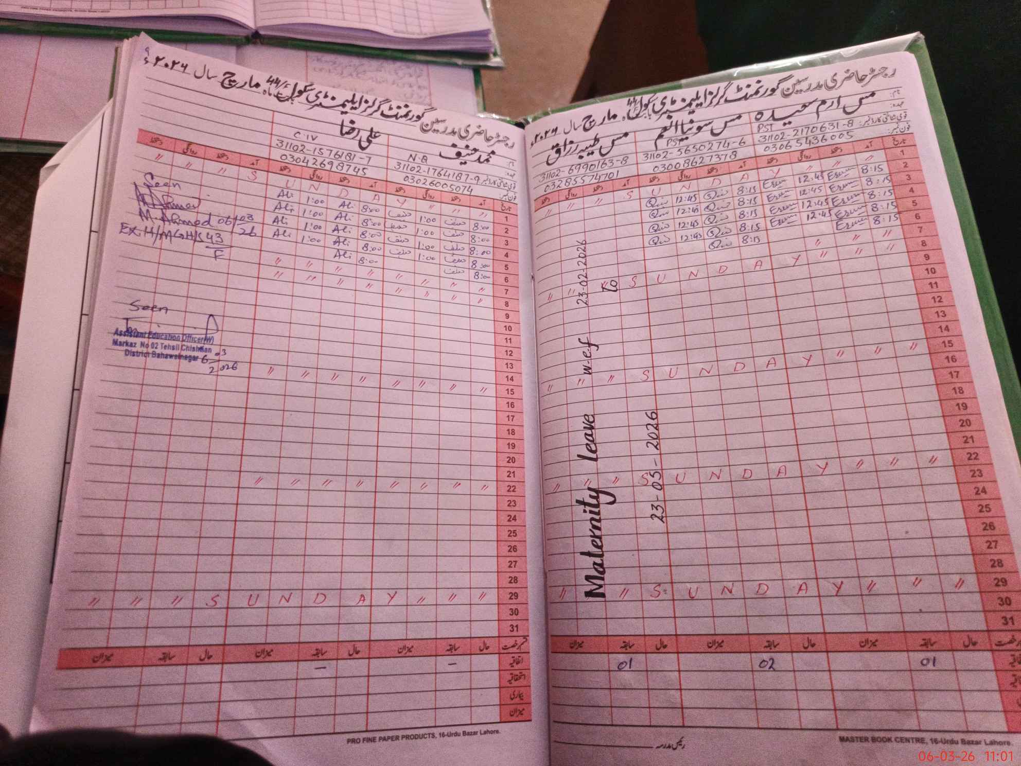 | Leave | Duty | Absent | Maternity | Medical | Ex- Pak |
