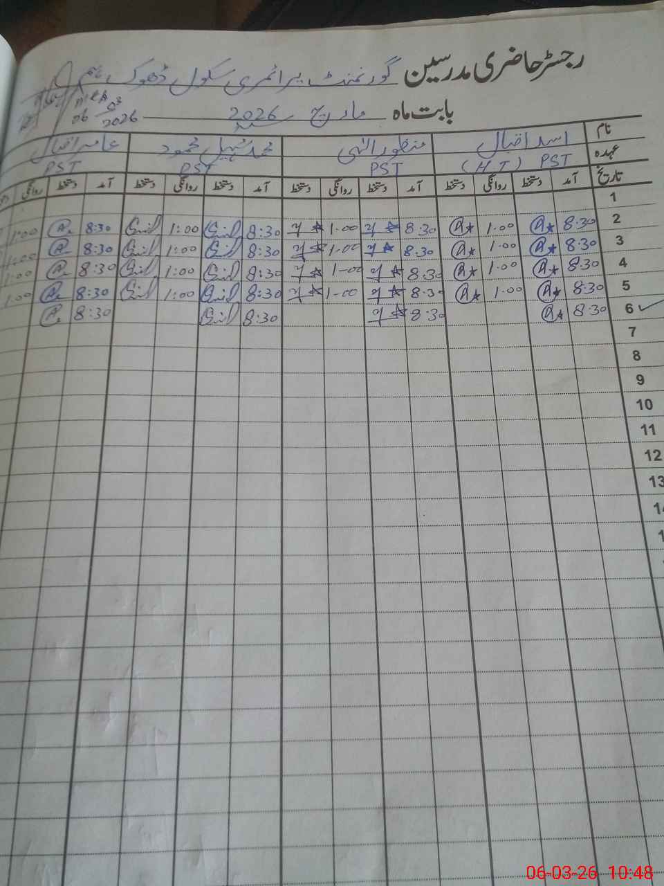 | Name: Li**** Al**** Aw**** Designation: (School Headmaster's/Headmistress's) PST/PTC/JV Phone/Cell Number: 03**** |