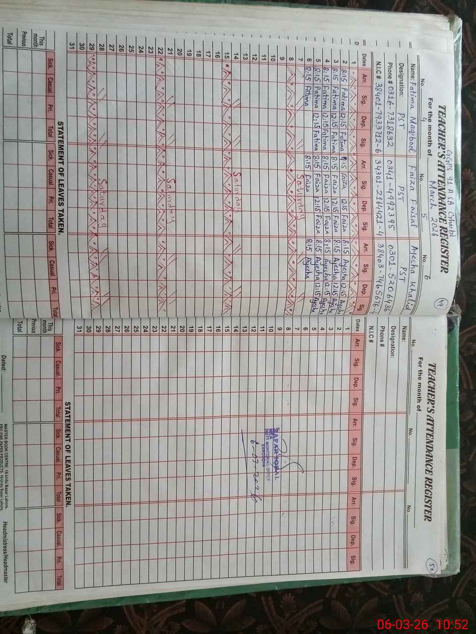 | Name: Sa**** Ma**** Designation: (School Headmaster's/Headmistress's) PST Phone/Cell Number: 03**** |