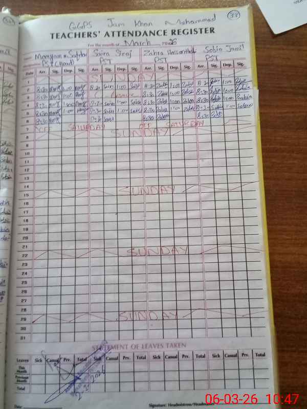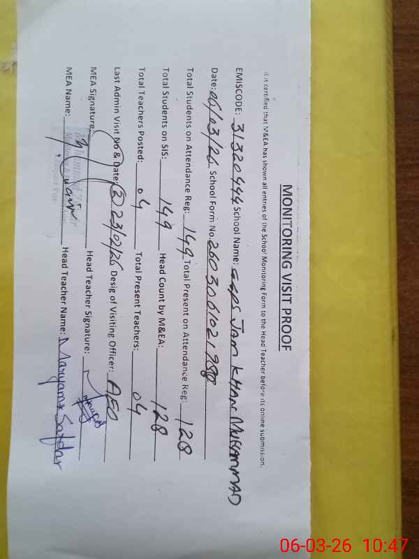 | EMIS Code: 31320444 | Name of School: GGPS JAM KHAN MUHAMMAD | |||