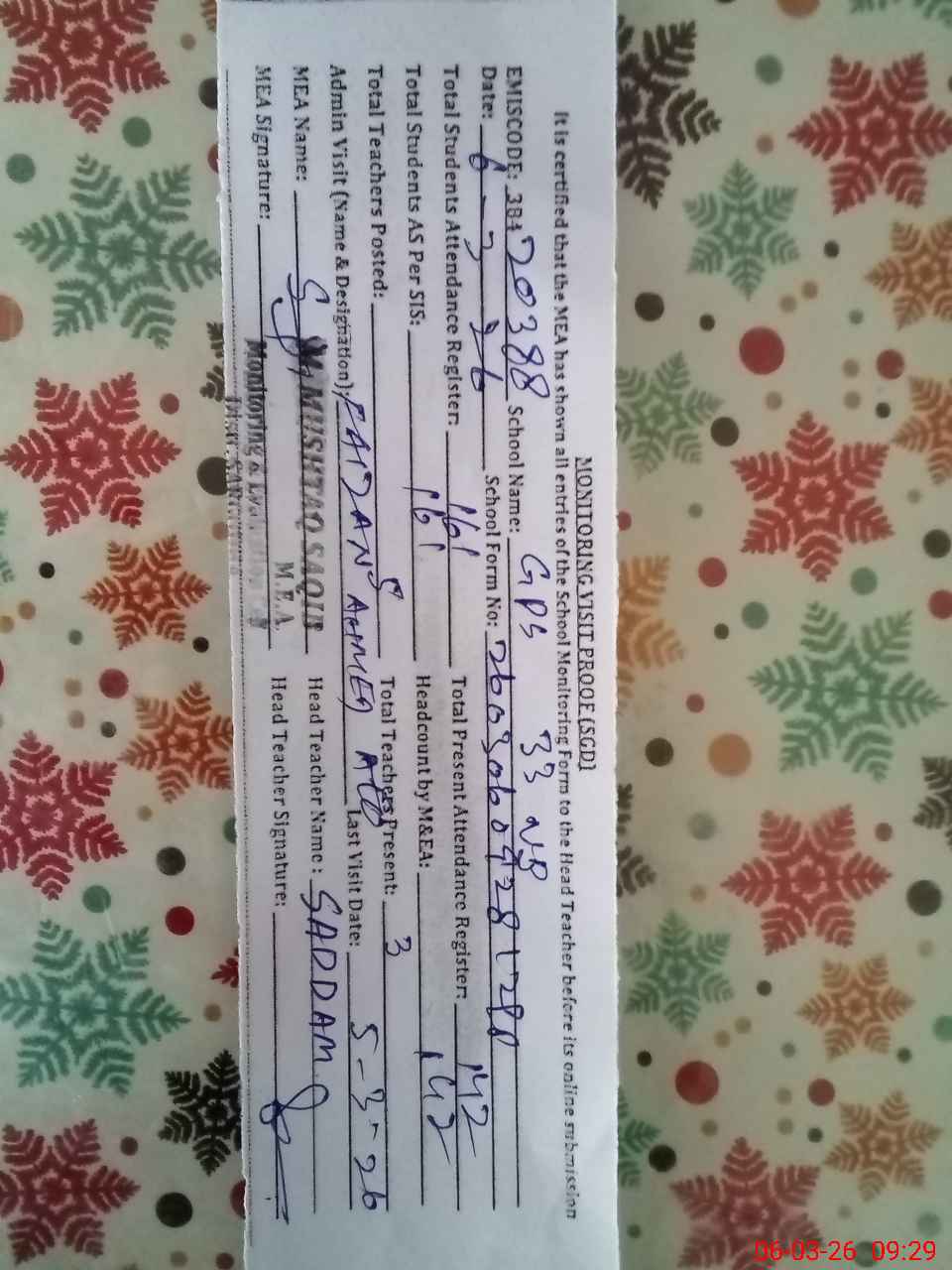 | EMIS Code: 38420388 | Name of School: GPS CHAK NO.33 NB | |||