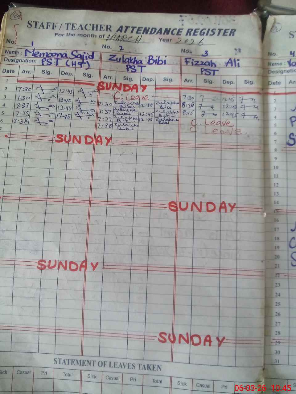 | Name: Me**** Sa**** Designation: (School Headmaster's/Headmistress's) PST Head Phone/Cell Number: 03**** |