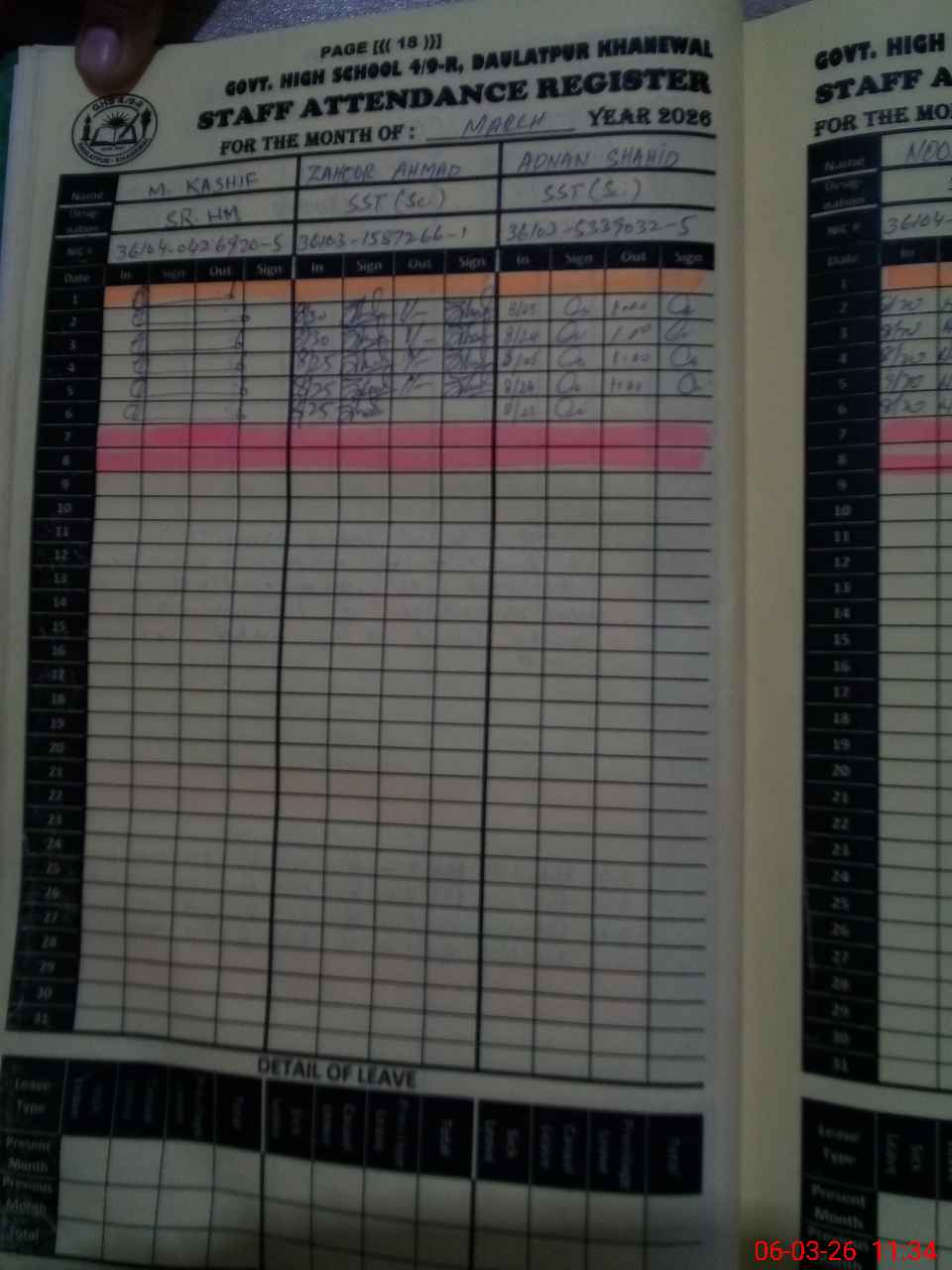 | CNIC | Full Name | Designation | R/C | Absence During Last Calender Month |