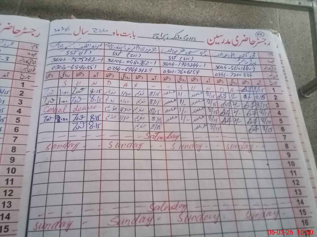 | CNIC | Full Name | Designation | R/C | Absence During Last Calender Month |