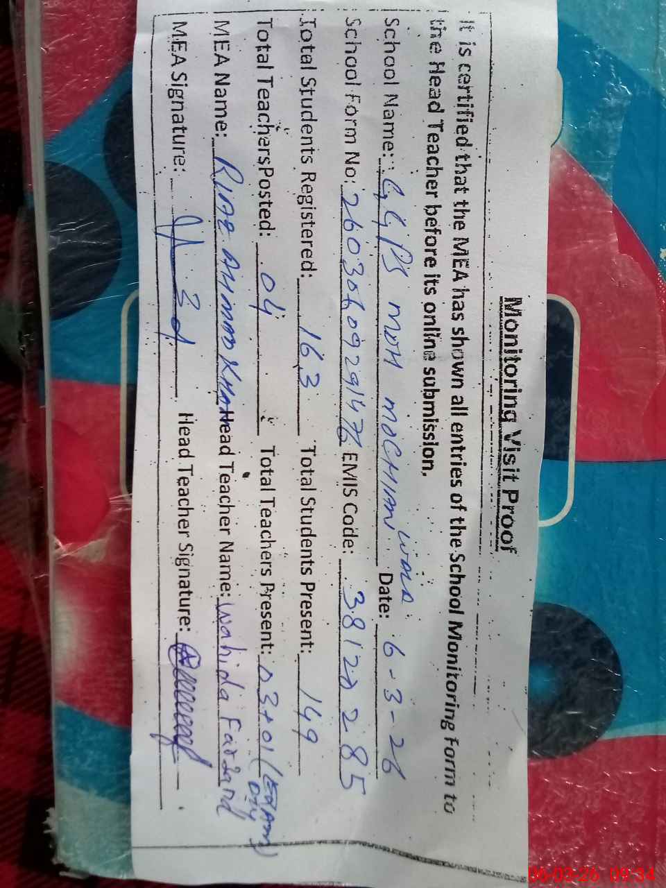 | EMIS Code: 38120285 | Name of School: GGPS MUHALLA MOCHAIN WALA | |||