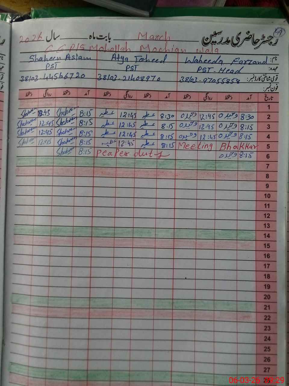 | 38**** | At**** To**** | PST Arts | Regular | 0 | 0 | 0 | 0 | 0 | 0 | 0 | 0 | 0 | Exam Duty |