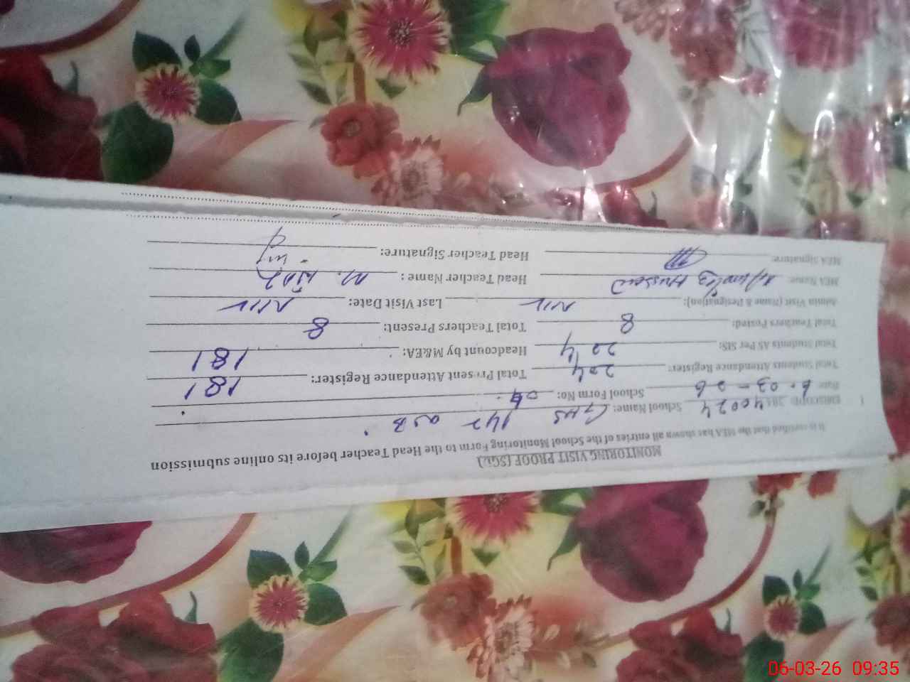 | Certified that this School was Inspected by the Undersigned MEA/DMO Today and the Information Stated Above is as Per Record. | |||||