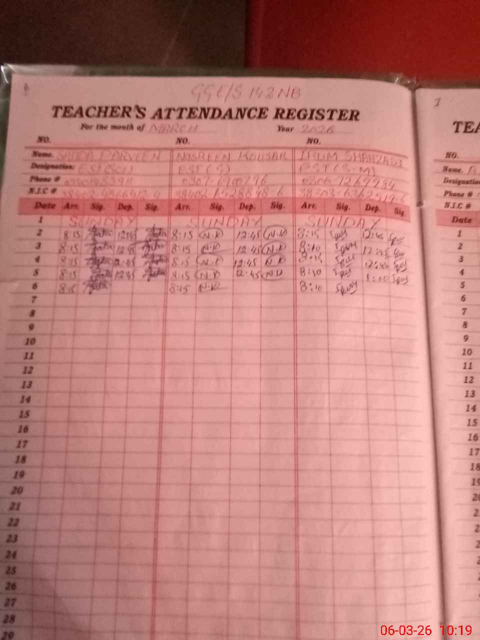 | Name: Sa**** Pa**** Designation: (School Headmaster's/Headmistress's) EST SCI Phone/Cell Number: 03**** |