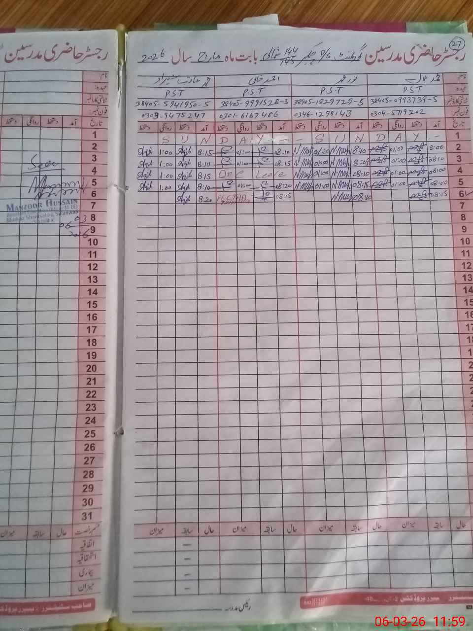 | CNIC | Full Name | Designation | R/C | Absence During Last Calender Month |