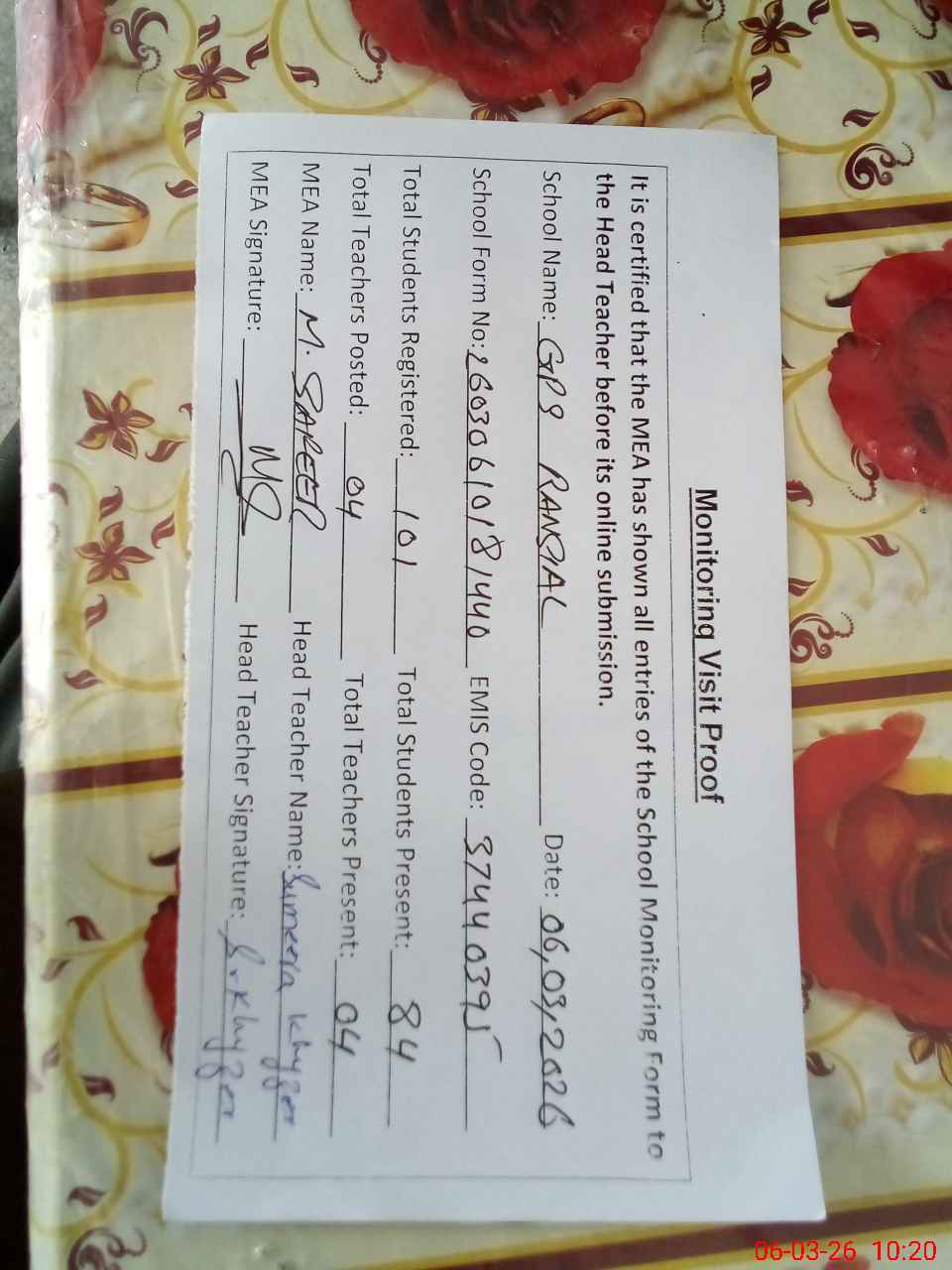 | EMIS Code: 37440395 | Name of School: GPS RANSIAL | |||