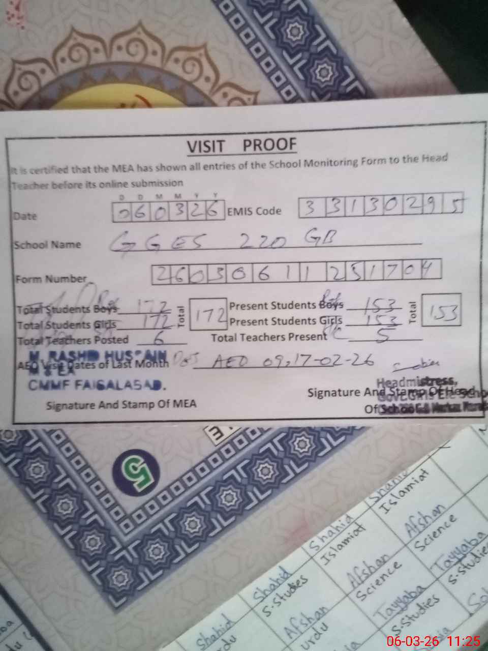 | EMIS Code: 33130295 | Name of School: GGES CHAK NO 220 GB | |||