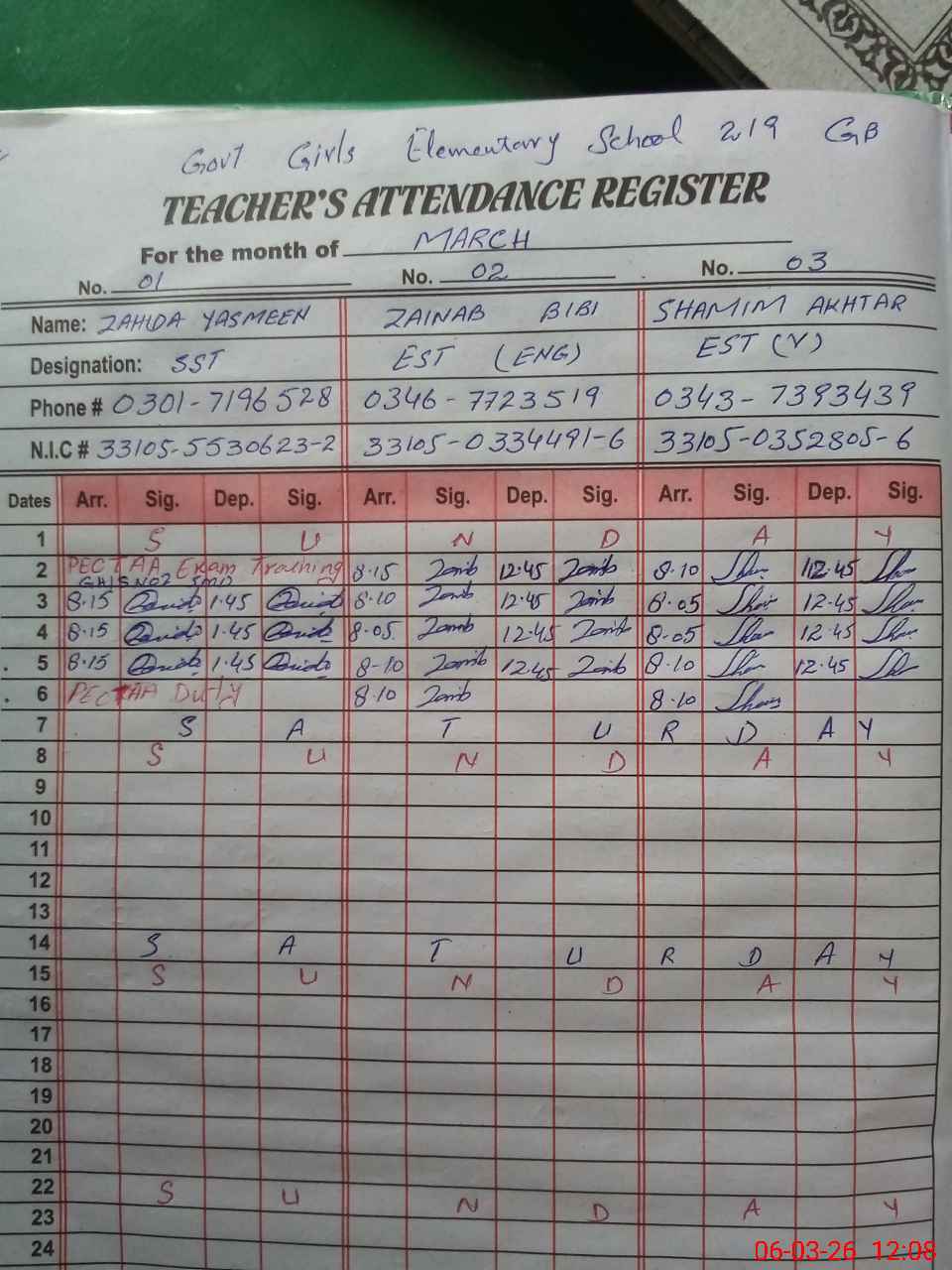 | Name: ZA**** YA**** Designation: (School Headmaster's/Headmistress's) SST (GENERAL) Phone/Cell Number: 03**** |