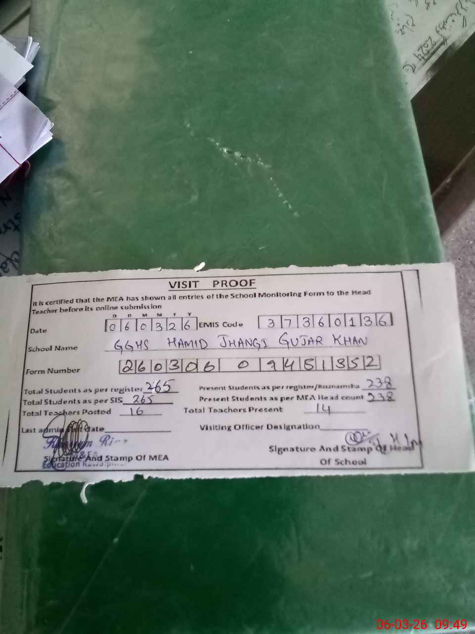 | EMIS Code: 37360136 | Name of School: GGHS HAMID JHANGI | |||