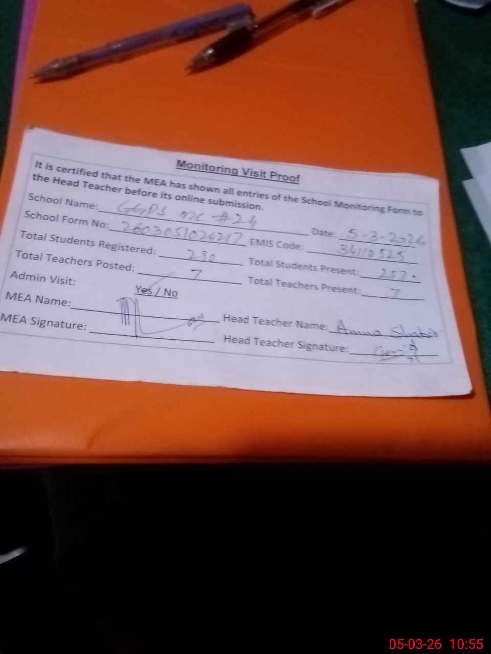 | Certified that this School was Inspected by the Undersigned MEA/DMO Today and the Information Stated Above is as Per Record. | |||||