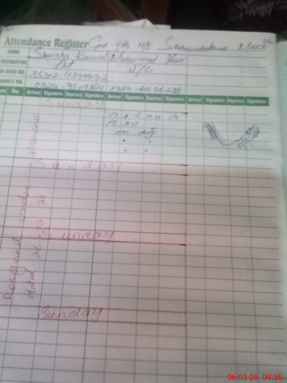 | Name: IR**** KA**** Designation: (School Headmaster's/Headmistress's) SST General Phone/Cell Number: 03**** |