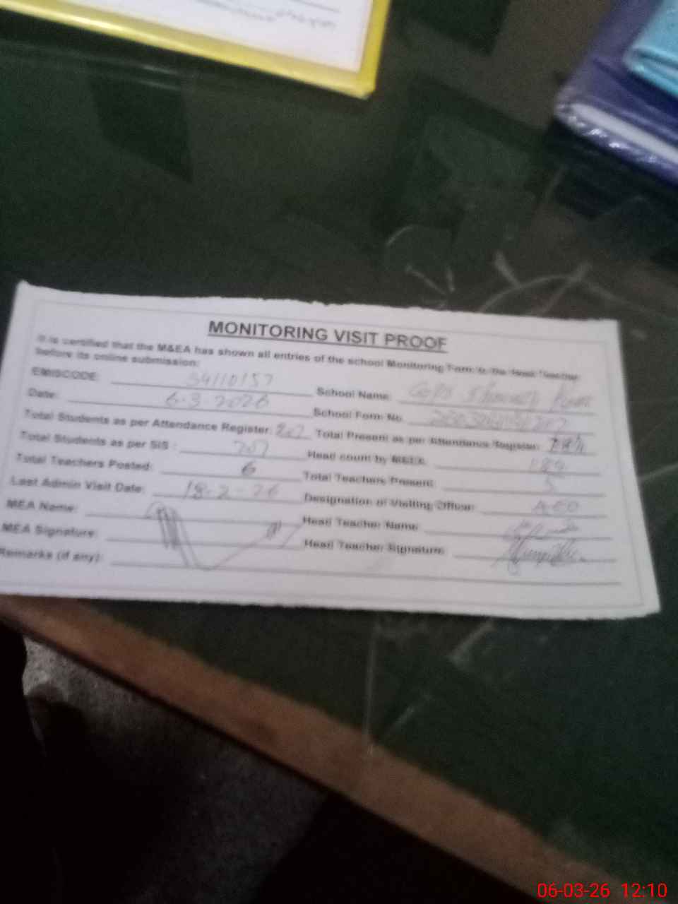 | EMIS Code: 34110157 | Name of School: GPS SHARIF PURA | |||