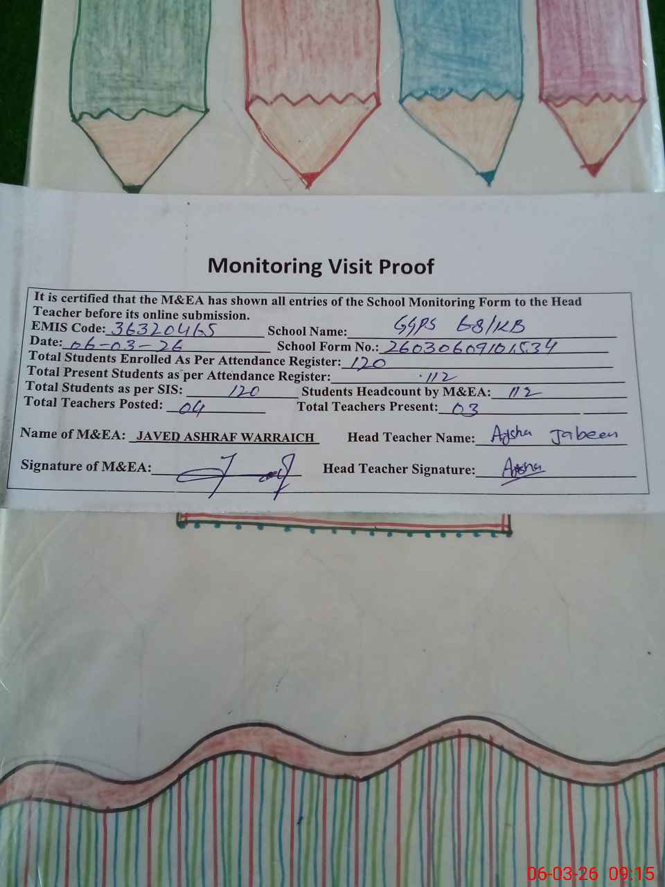| EMIS Code: 36320465 | Name of School: GGPS 68 KB | |||