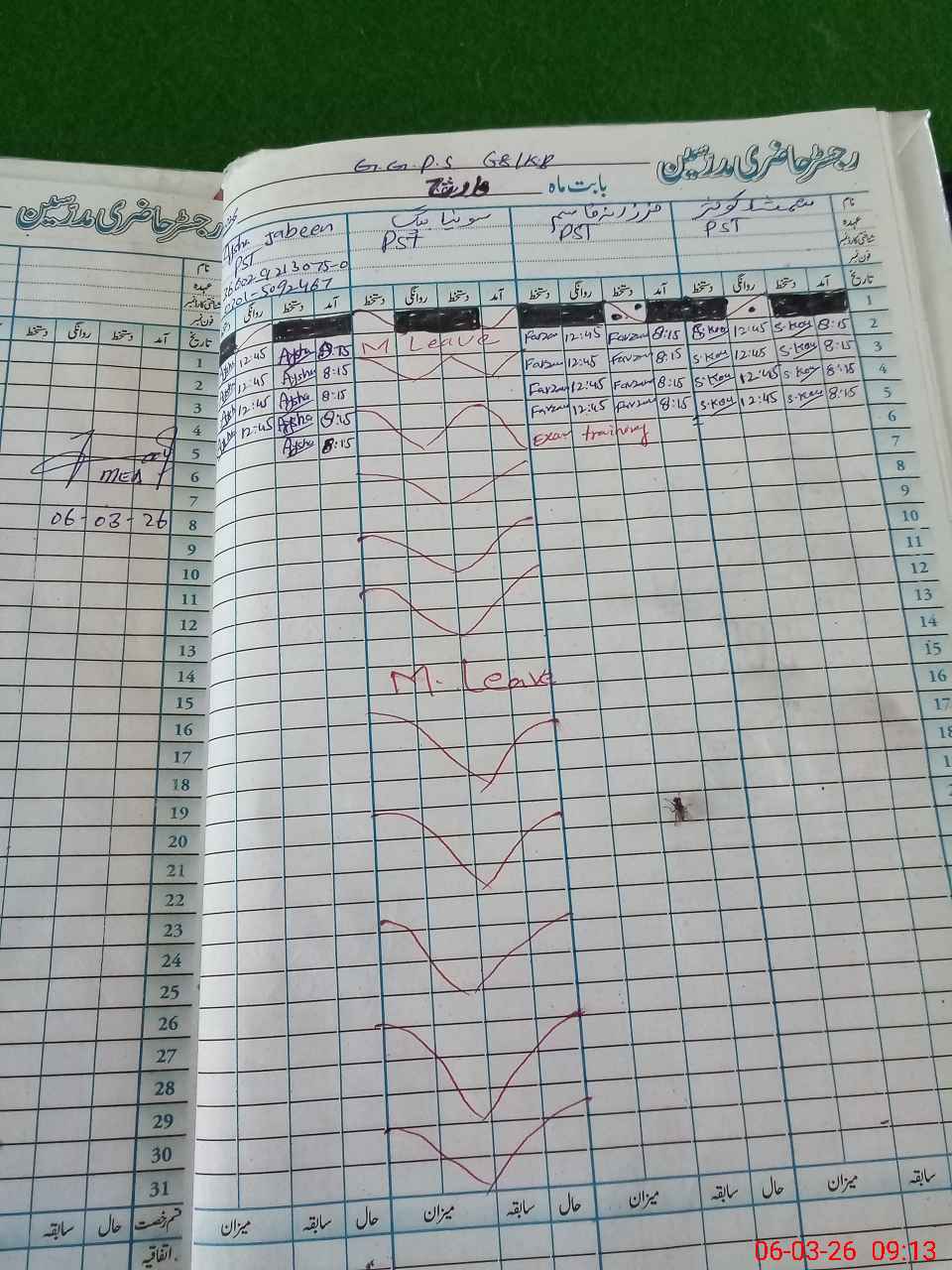 | 36**** | Fa**** Qa**** | PST Arts | Regular | 0 | 0 | 0 | 0 | 0 | 0 | 0 | 0 | 0 | Exam Duty |