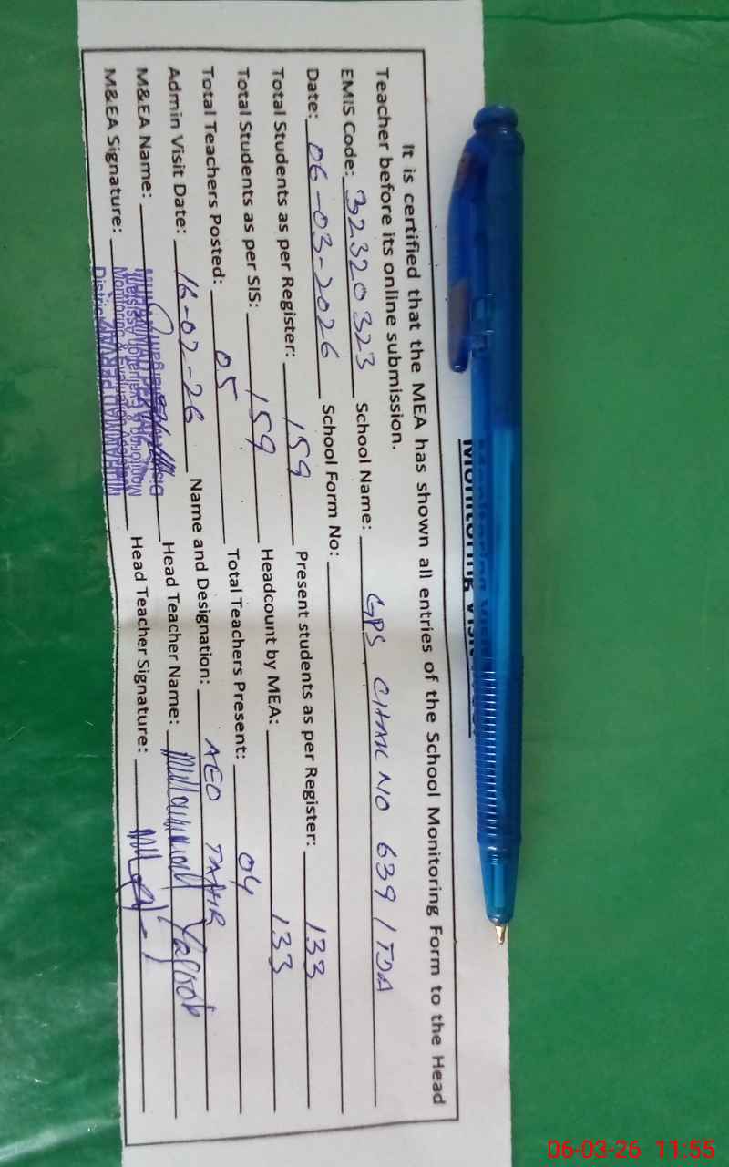 | EMIS Code: 32320323 | Name of School: GPS CHAK NO.639 TDA | |||