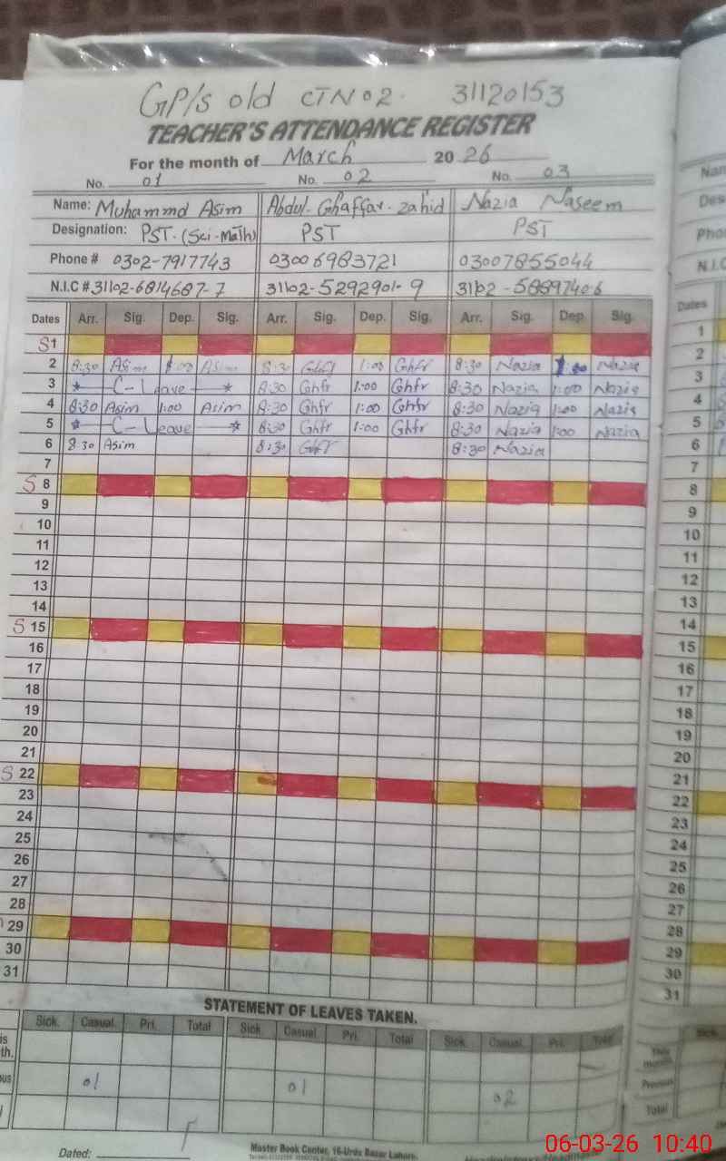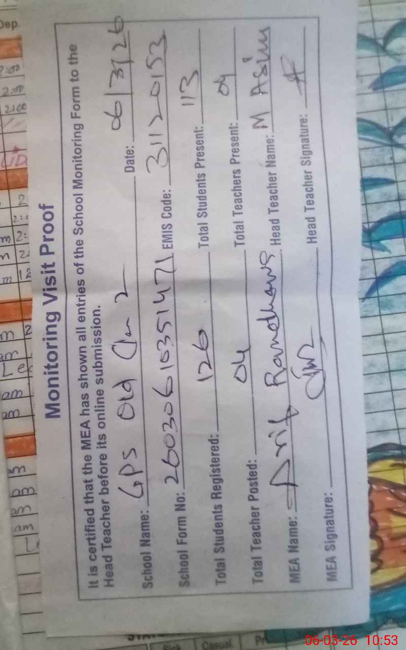 | EMIS Code: 31120153 | Name of School: GPS OLD CHISHTIAN NO. 2 | |||