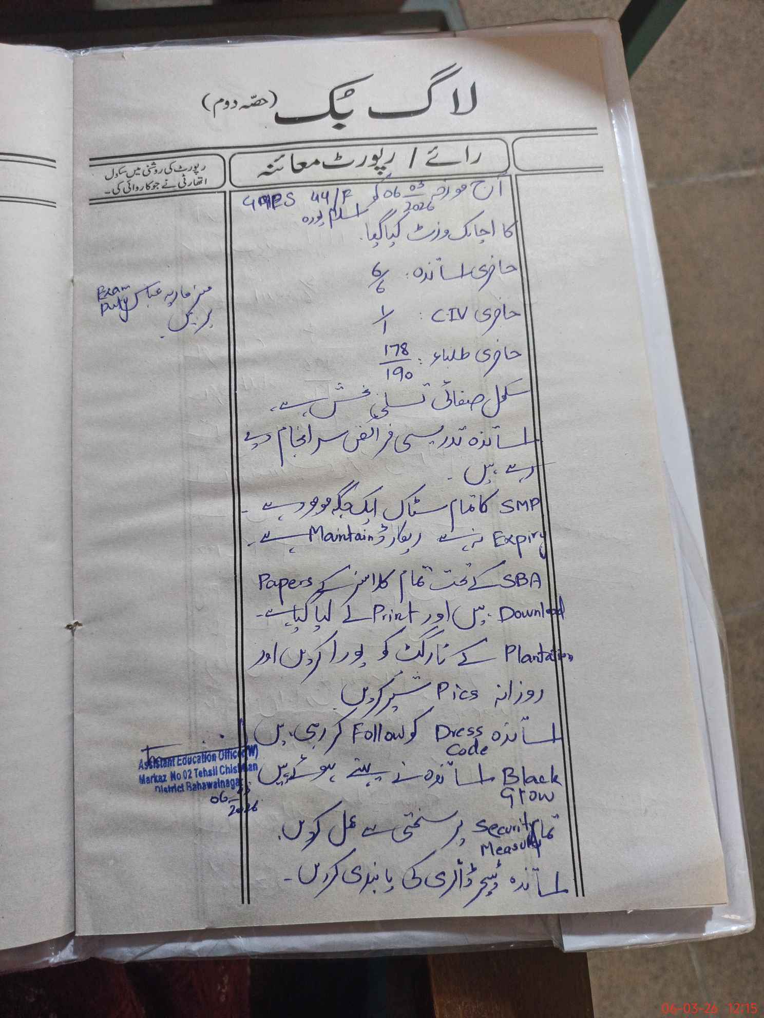 | District: BAHAWALNAGAR | Tehsil: CHISHTIAN | Markaz: CTN -II-FEMALE | Level: Primary | |