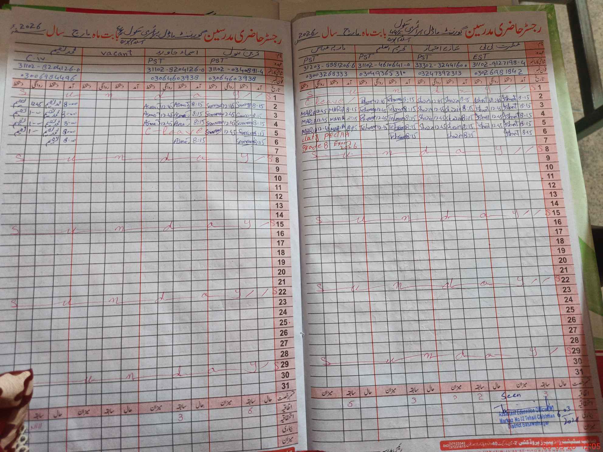 | Name: IS**** BB Designation: (School Headmaster's/Headmistress's) EST Phone/Cell Number: 03**** |
