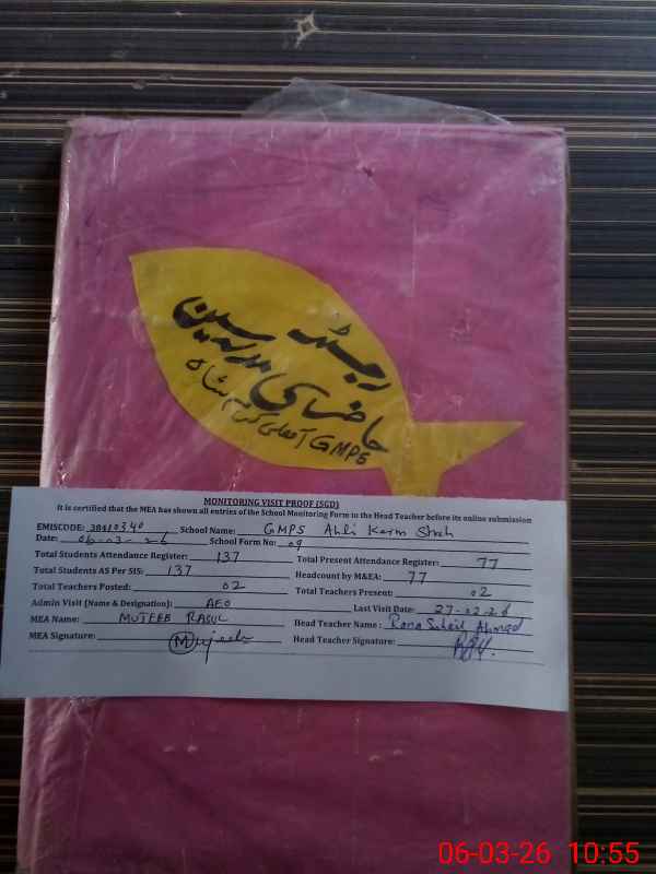| EMIS Code: 38410340 | Name of School: GMPS AHLI KARAM SHAH | |||