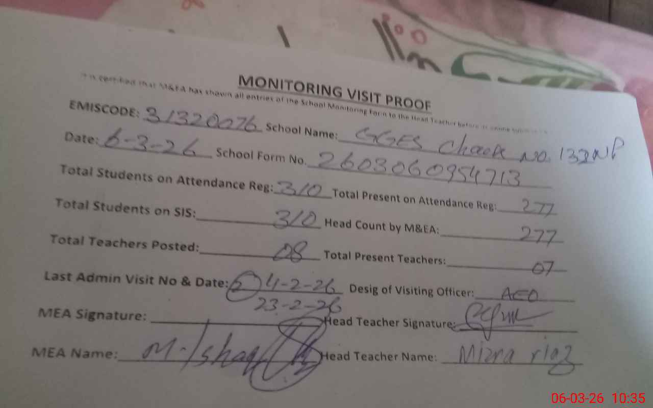 | EMIS Code: 31320076 | Name of School: GGES CHAK 132/NP | |||