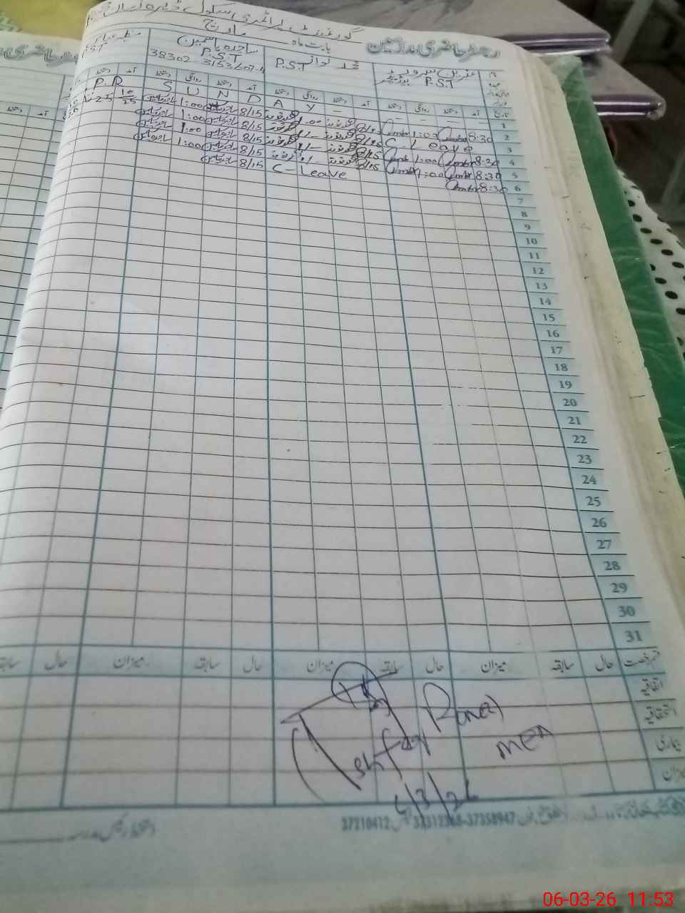 | CNIC | Full Name | Designation | R/C | Absence During Last Calender Month |