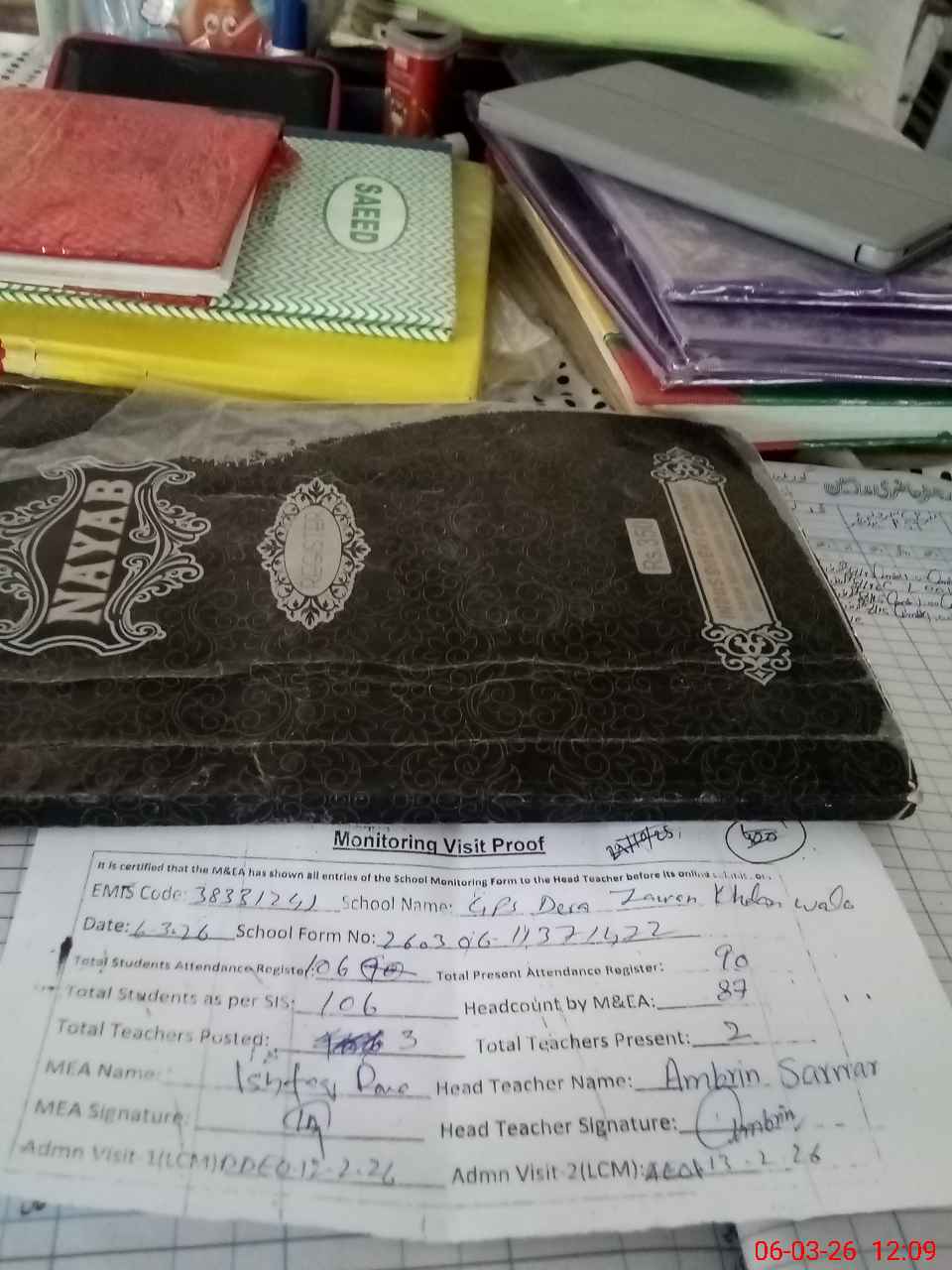 | Attendance Register | Head Teacher | MEA with School | Visit Proof |