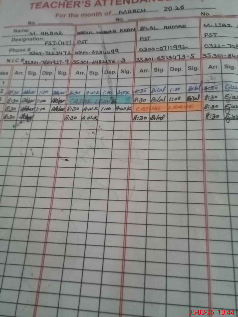 | Name: Mu**** Ak**** Designation: (School Headmaster's/Headmistress's) PTC/ Phone/Cell Number: 03**** |