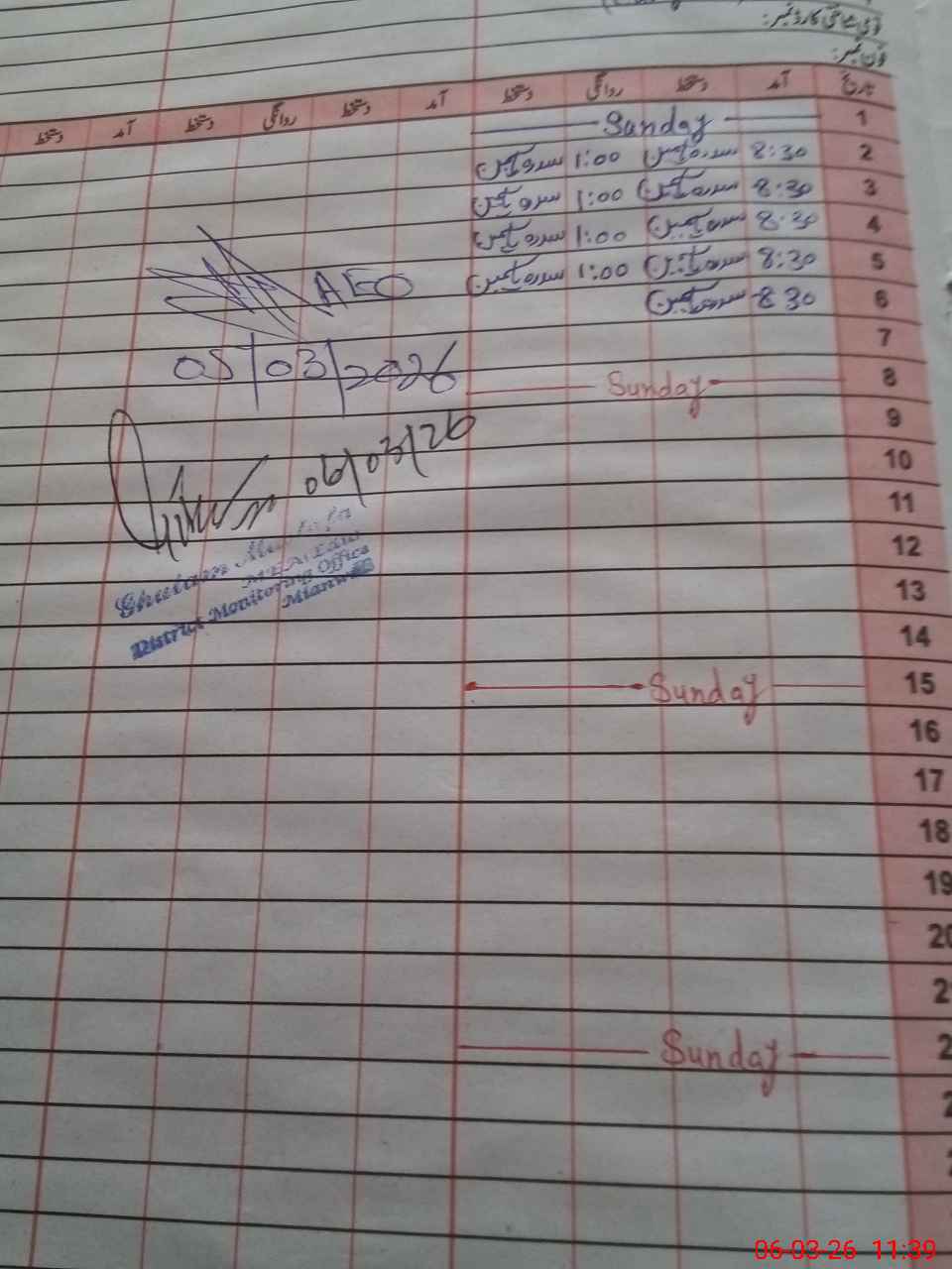 | Name of AEO: | AEO Contact No.: | MEA Phone#: 03**** | ||