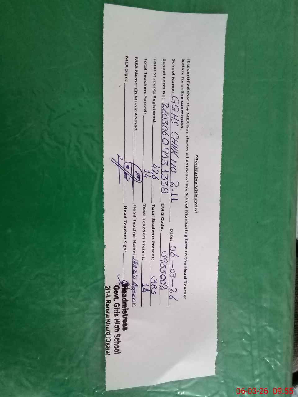 | Certified that this School was Inspected by the Undersigned MEA/DMO Today and the Information Stated Above is as Per Record. | |||||