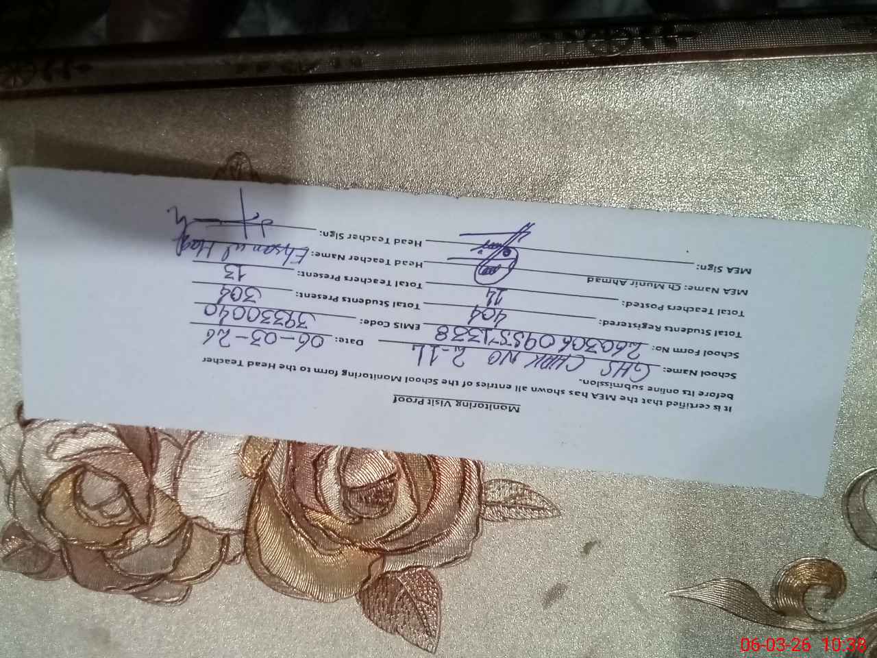 | Certified that this School was Inspected by the Undersigned MEA/DMO Today and the Information Stated Above is as Per Record. | |||||