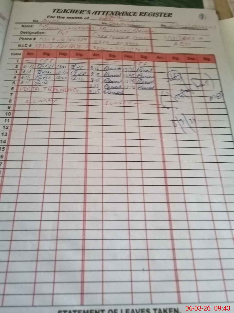 | Name: Am**** Ta**** Designation: (School Headmaster's/Headmistress's) PST Phone/Cell Number: 03**** |