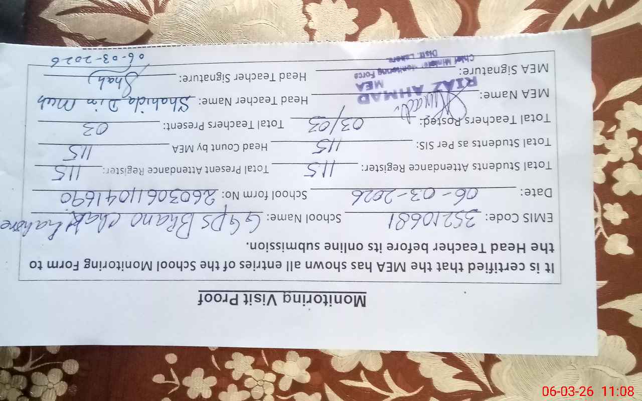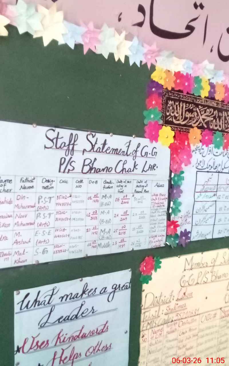 | EMIS Code: 35210681 | Name of School: GGPS BHANO CHAK | |||