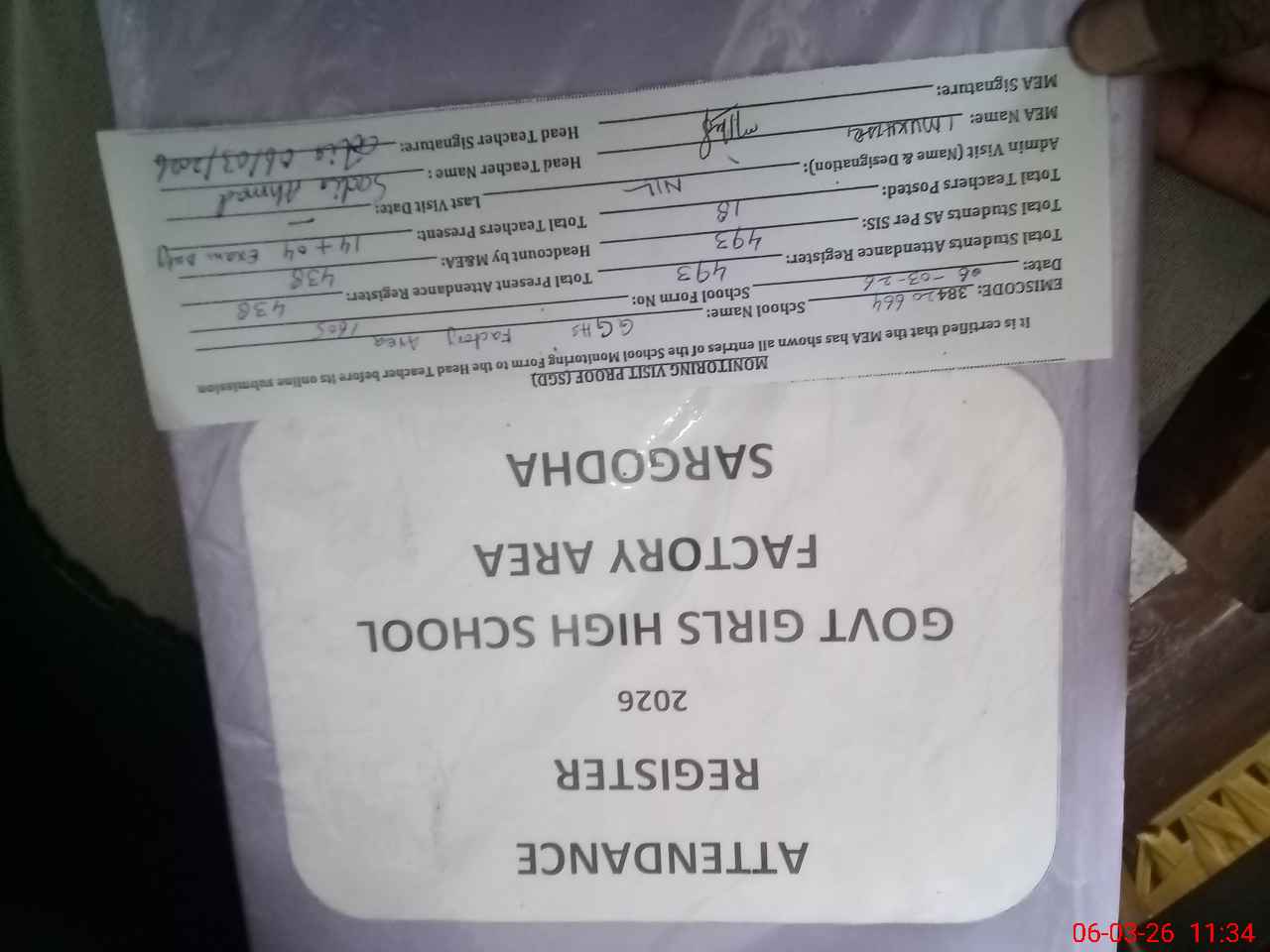 | Attendance Register | Head Teacher | MEA with School | Visit Proof |