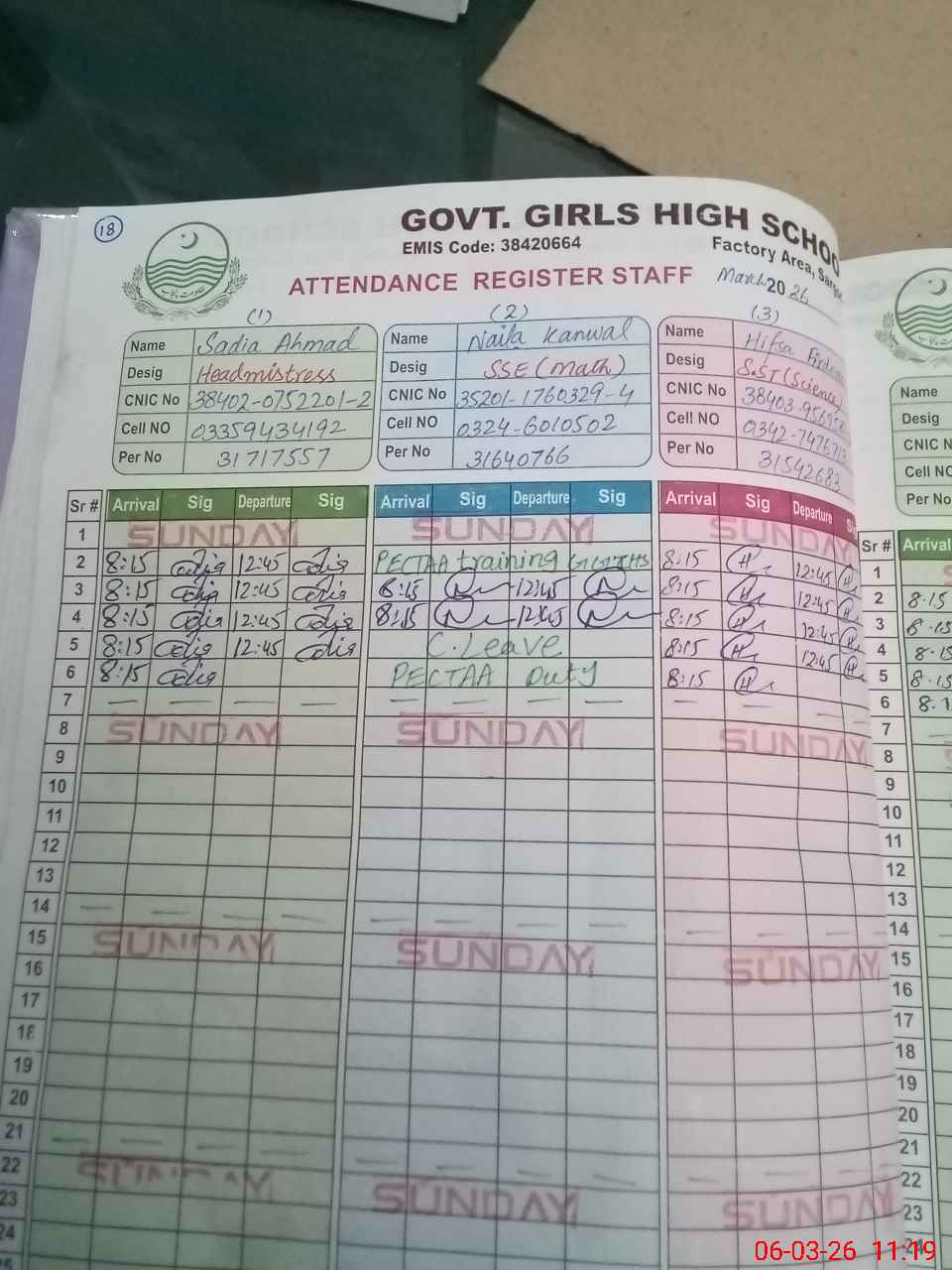 | 38**** | Iq**** Ha**** | PST Science/Maths | Regular | 0 | 0 | 0 | 0 | 0 | 0 | 0 | 0 | 0 | Exam Duty |