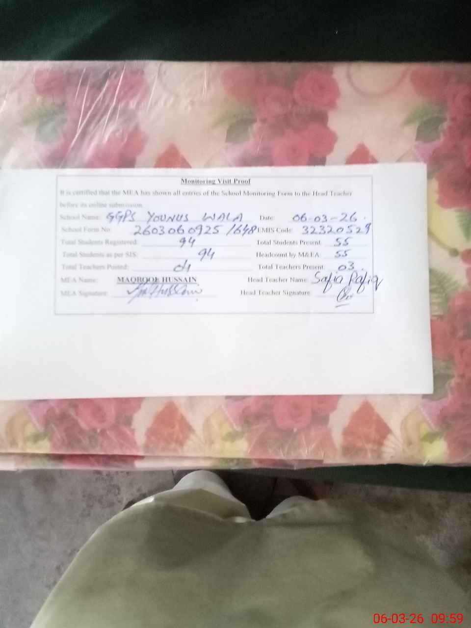 | EMIS Code: 32320529 | Name of School: GGPS YOUNAS WALA | |||