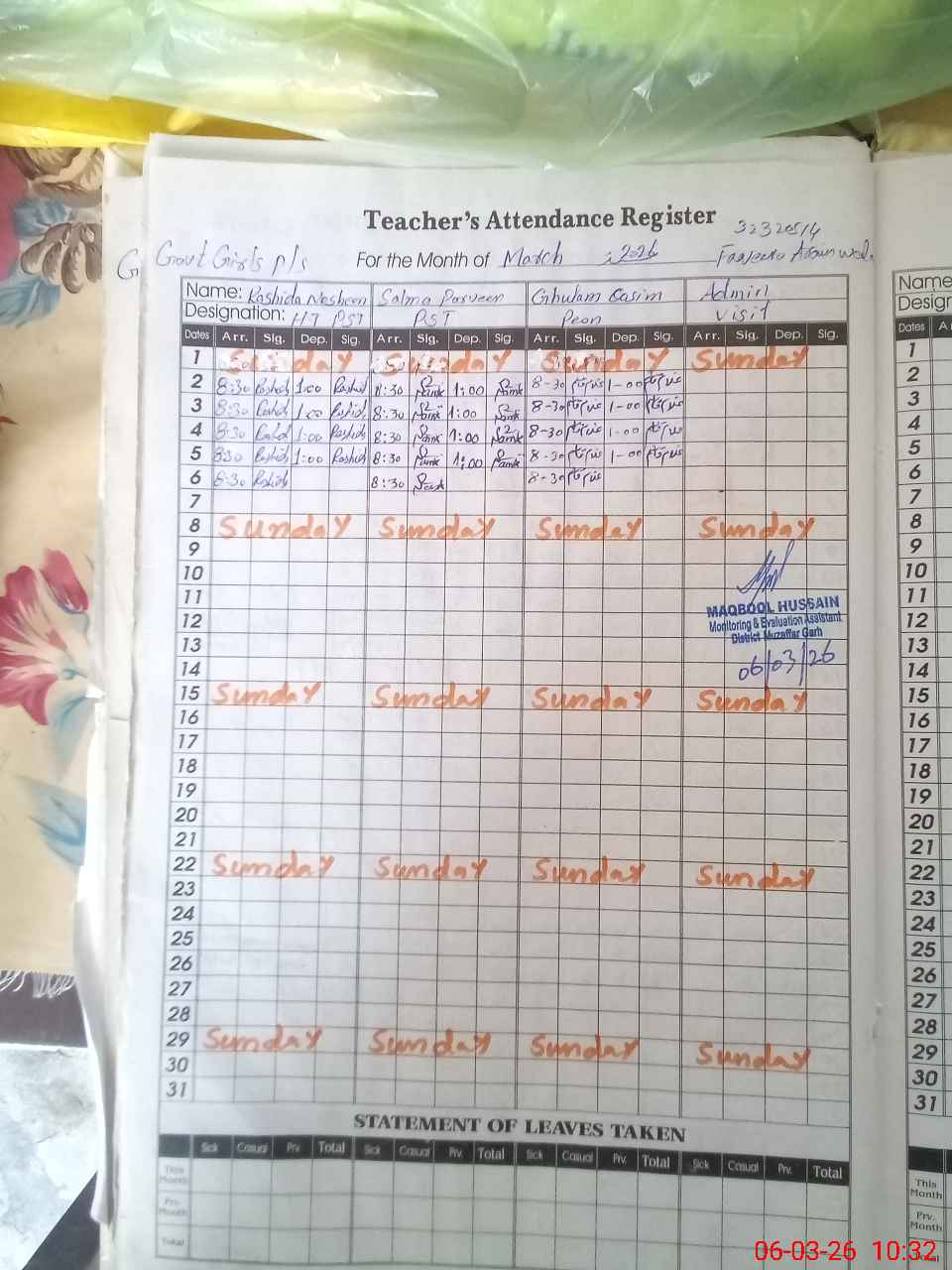 | Name: As**** Sa**** Designation: (School Headmaster's/Headmistress's) PST Phone/Cell Number: 03**** |