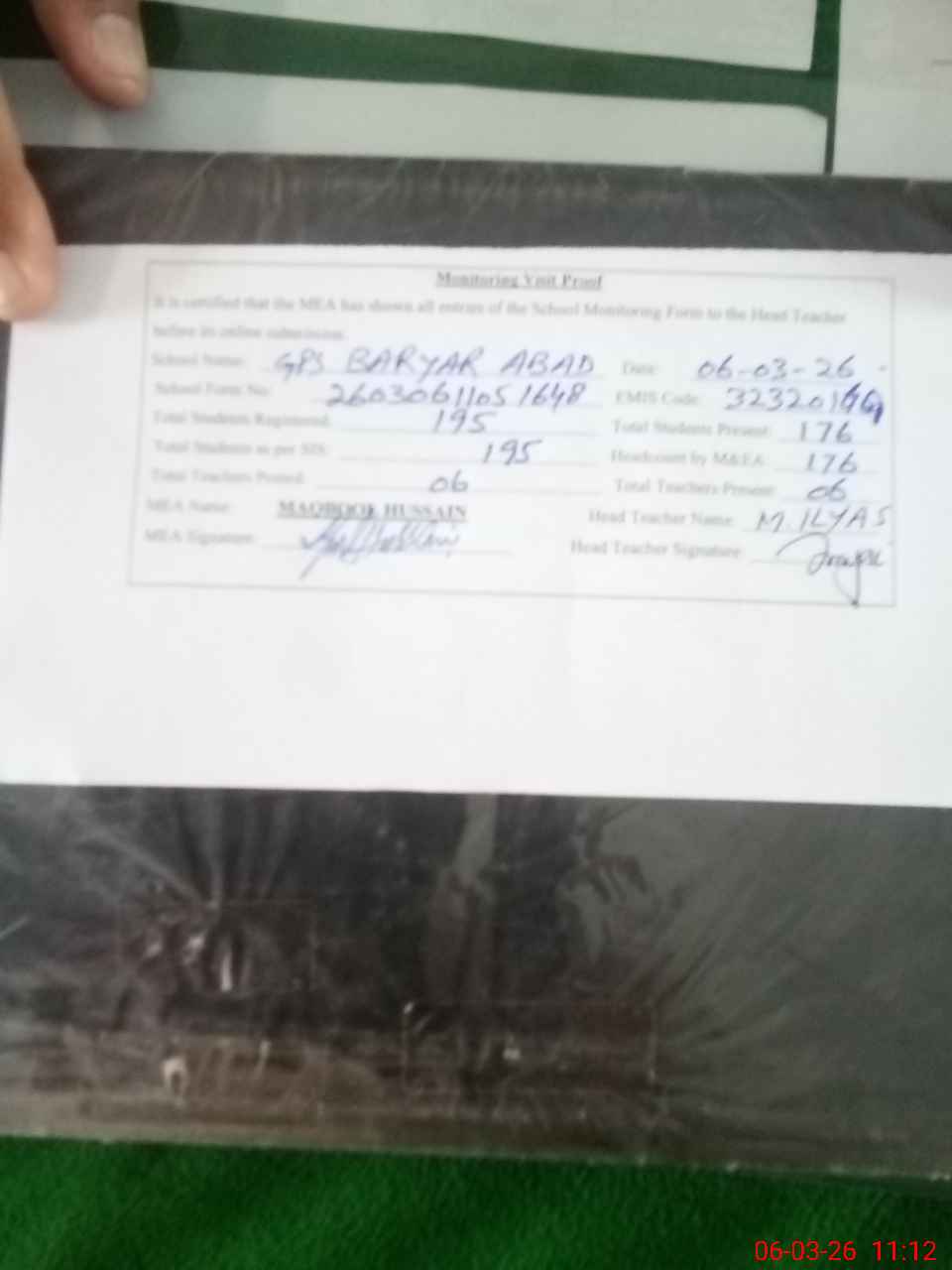 | EMIS Code: 32320169 | Name of School: GPS BARYAR ABAD | |||