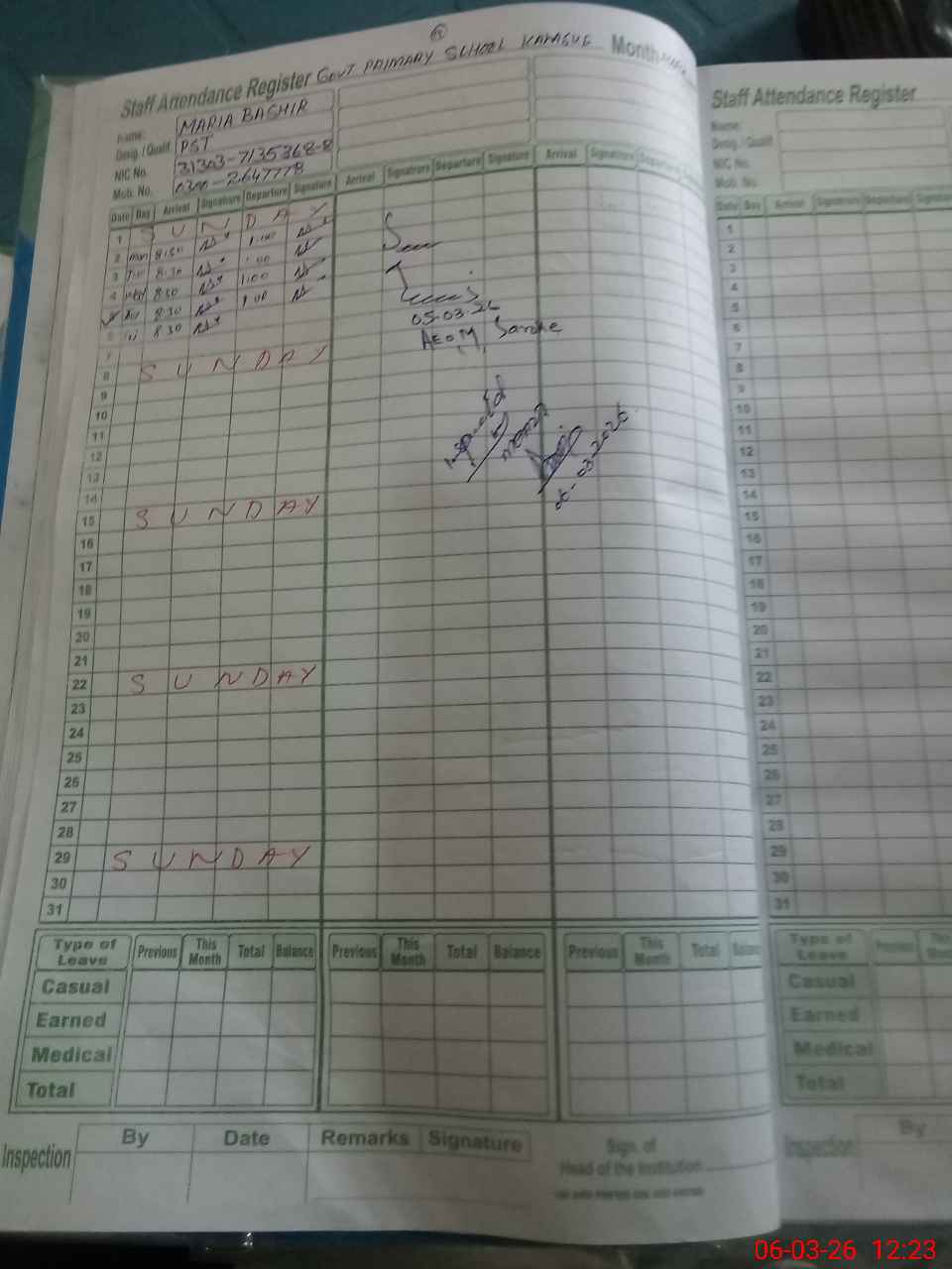 | Name: MGU**** Designation: (School Headmaster's/Headmistress's) PST Phone/Cell Number: 03**** |