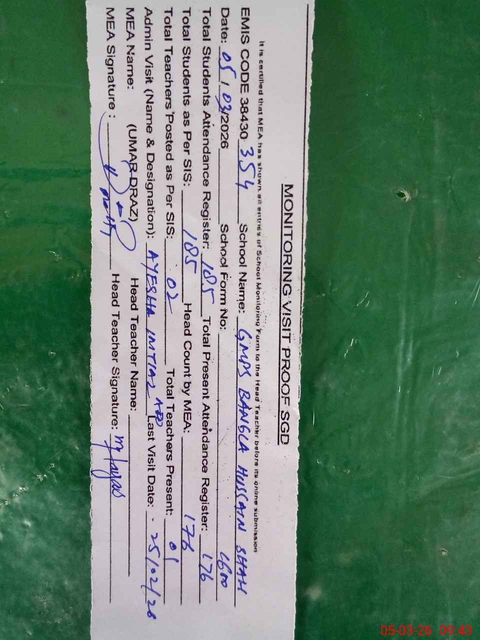 | EMIS Code: 38430354 | Name of School: GPmS BANGLA HUSSAIN SHAH | |||