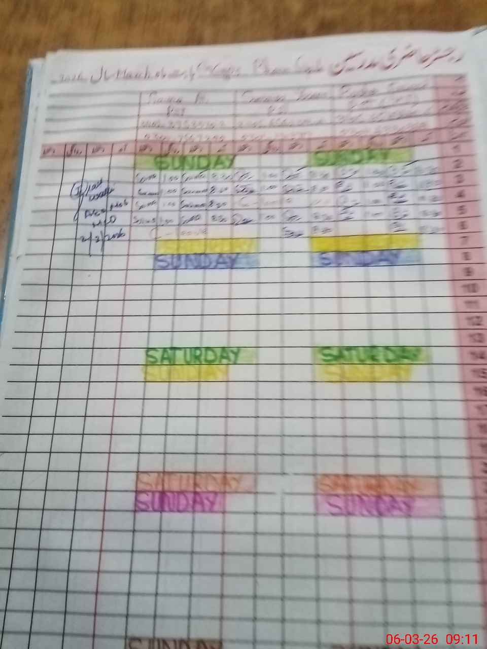 | CNIC | Full Name | Designation | R/C | Absence During Last Calender Month |