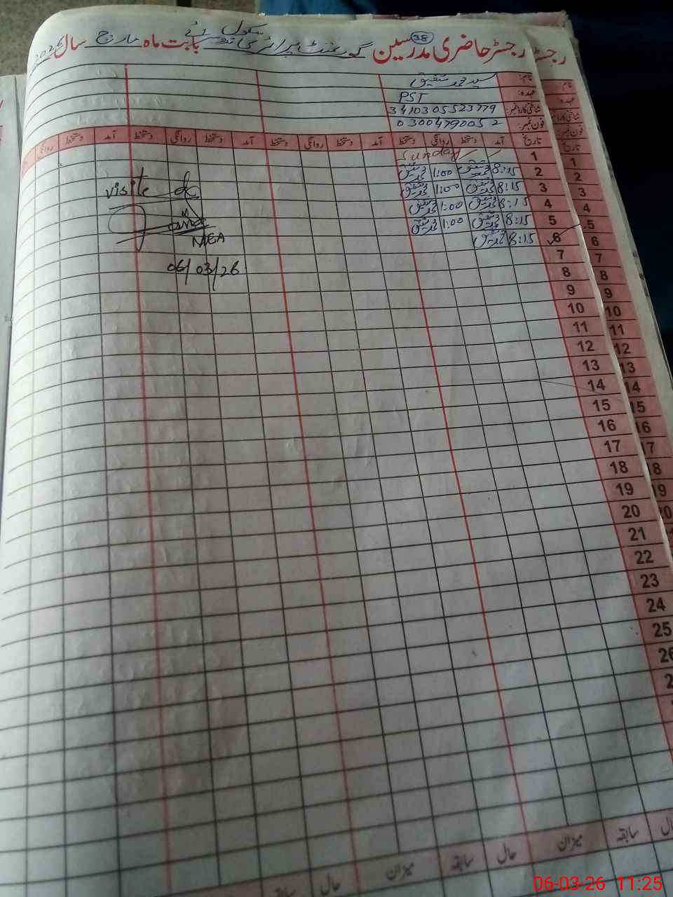 | Name: SY**** MU**** SH**** Designation: (School Headmaster's/Headmistress's) PST Phone/Cell Number: 03**** |